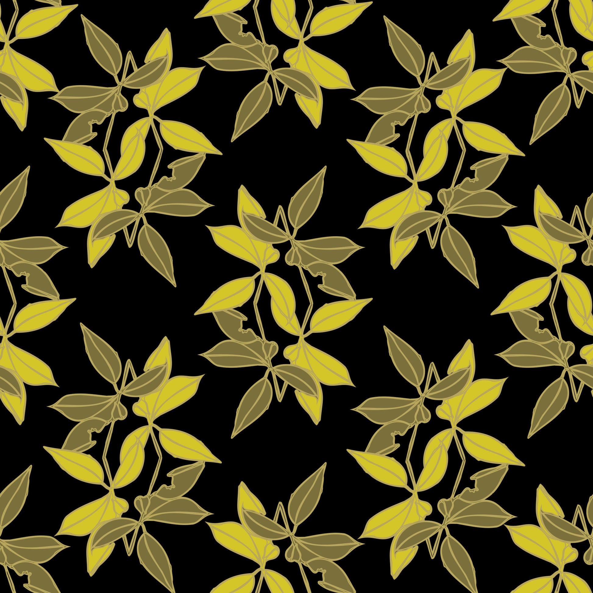 Diamond Leaves - Yellow on Black